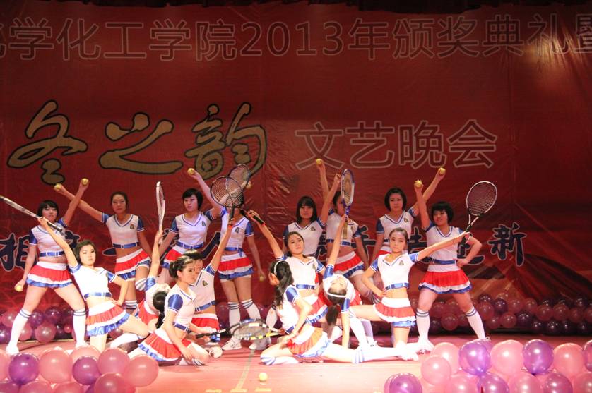 晚会节目形式多样,内容丰富多彩,特别是《舞狮》、《网球宝贝》、《盘子舞》,小品《人狗情未了》等节目更是精彩纷呈,老师们演唱的《山楂树之恋》与《同一首歌》将演出推向了高潮。晚会现场利用微博墙进行互动并设置了抽奖环节,场内外社团、员工通过微博、短信互动,表达了对老师和同学们的热爱与祝福,表达到了对新年美好的祝愿。