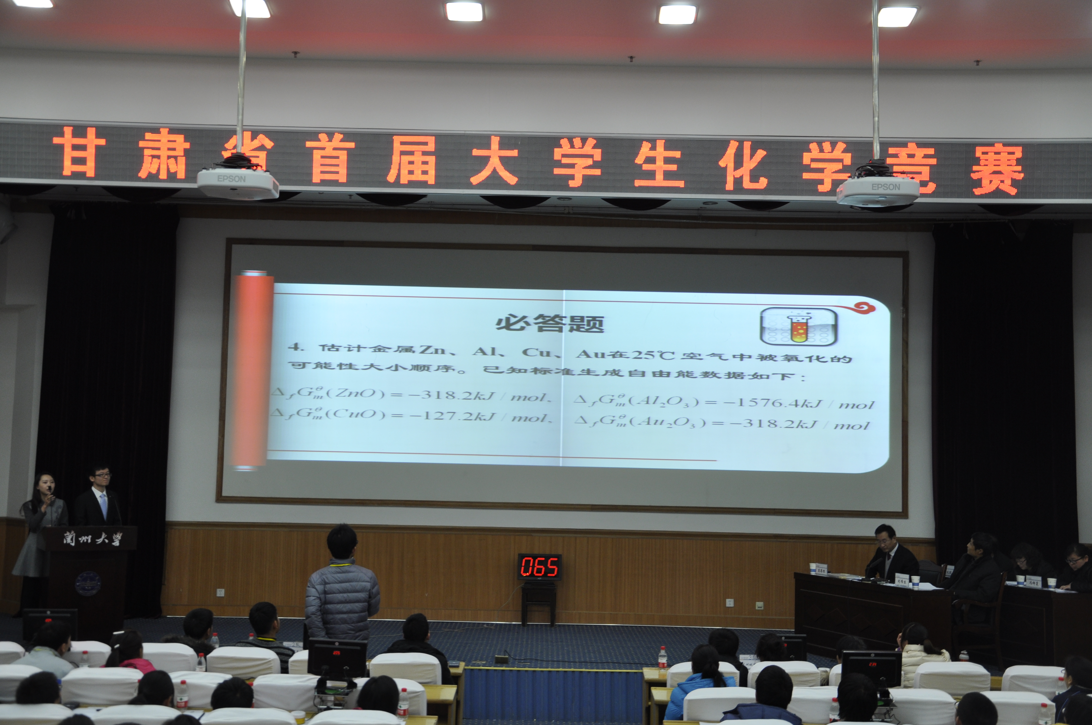 为促进化学公司产品新思想与新方法的交流,普及化学基础知识,激励老员工接触化学发展的前沿,培养老员工学习化学的兴趣爱好、创新意识、创新思维和创新能力,由甘肃省化学会主办,兰州大学承办的甘肃省首届化学竞赛于12月28-29日在兰州大学举行。