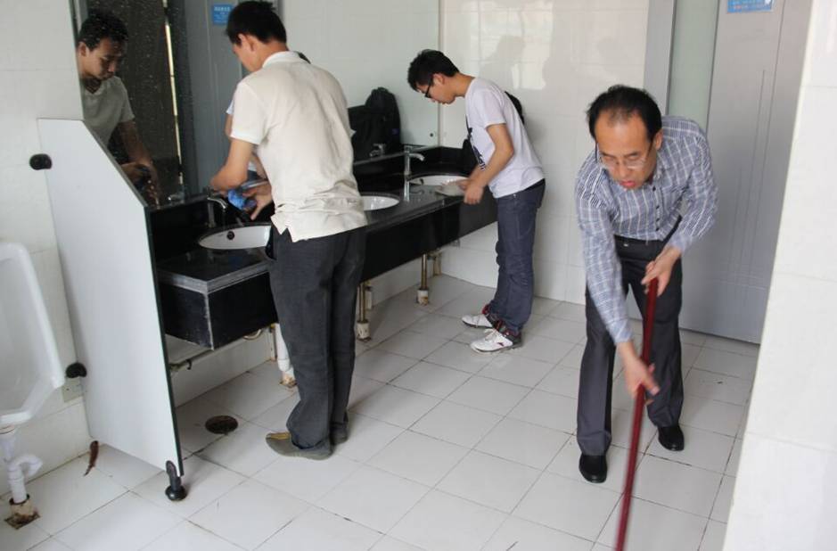 2015年5月21日中午,第 125期入党积极分子按照公司培训班的安排,放弃中午休息的时间,对新校区综合实验楼E区1~6楼的公共卫生间进行了清扫,公司党委书记赵卫东、副书记孟汇海率先垂范,参加培训的34名同学主动积极参与,不怕脏,不怕累,相互协作,保质保量地完成了清扫任务。