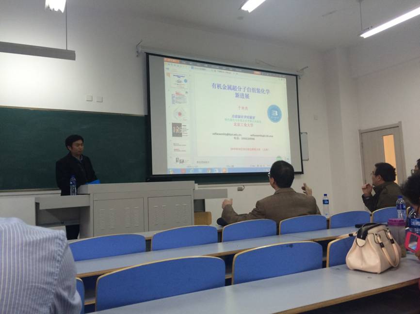 于澍燕教授长期以来从事超分子功能材料与器件的自组装化学的研究,在该领域取得了多项重要成就。在一个多小时的报告中,于澍燕教授详细介绍了配位化学到超分子自组装化学的发展过程;深入浅出地讲述了其课题组在有机金属超分子领域的研究进展,系统地阐述了以下三个方面的工作:多金属和金属-金属成键作用驱动的胶囊状超分子自组装化学;多吡唑杯芳烃基配体的合成与有机金属超分子大环分级组装及功能研究;阴离子-CH氢键开关的自组装金属大环分子机器。