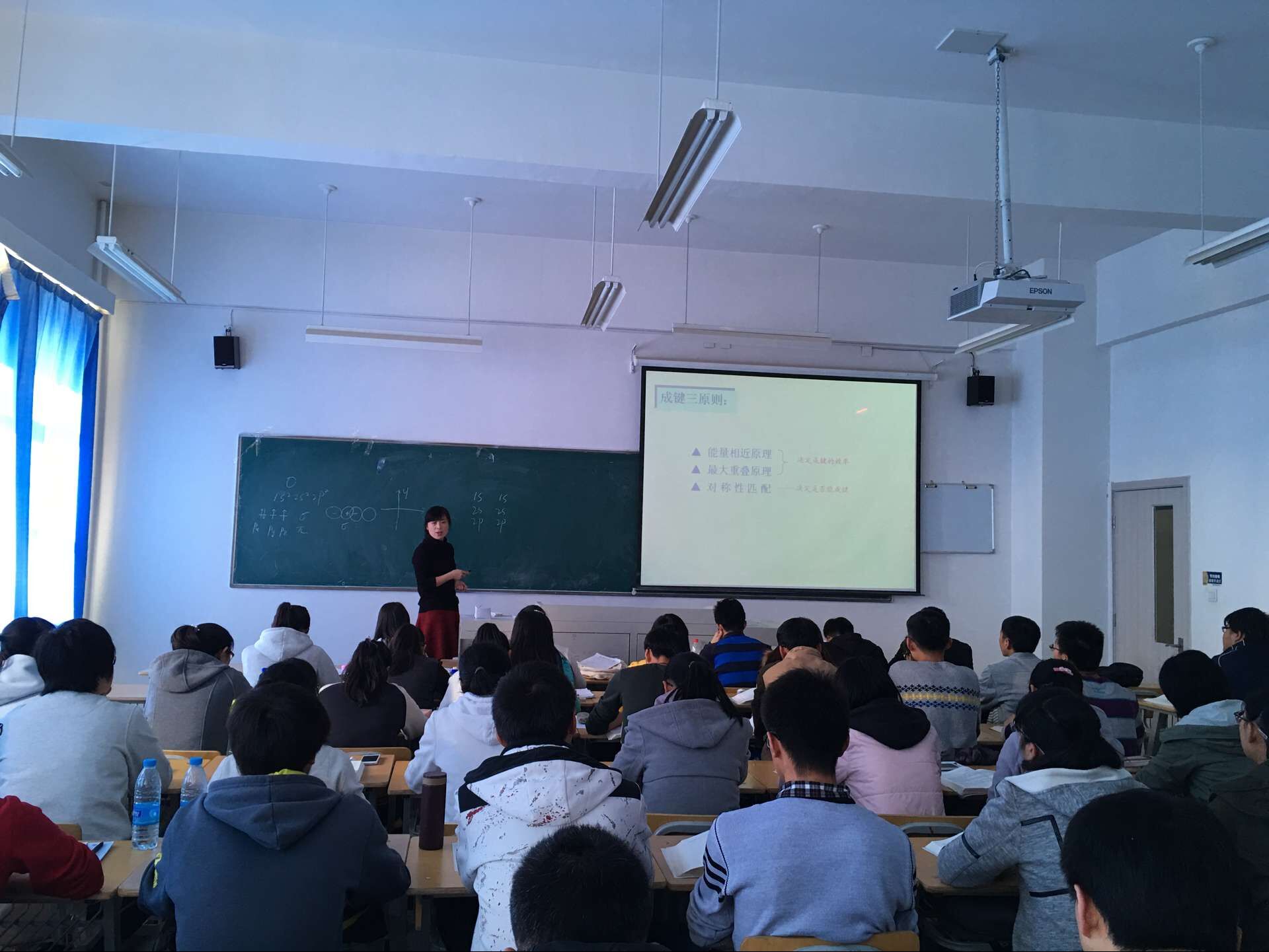 何晓燕老师主要讲解分子结构,对价键理论、成键轨道等进行了详细讲解,备课认真,内容熟悉,讲解流畅,能够根据员工的专业特点,灵活选择教学方法。讲课结束后,评委与听课教师对参赛教师的教学设计与课堂教学进行了分析与点评,提出了进一步控制好讲课节奏的建议。