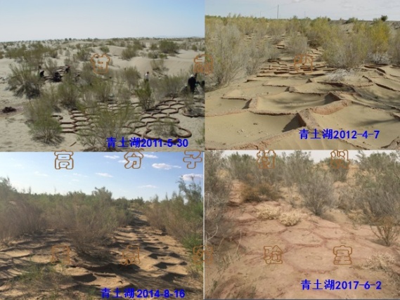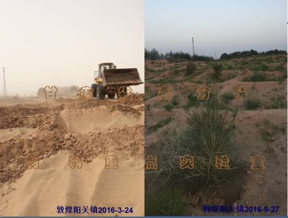 图1 土基材料辅助沙生植物保护 图2 土基材料辅助沙生植物种植