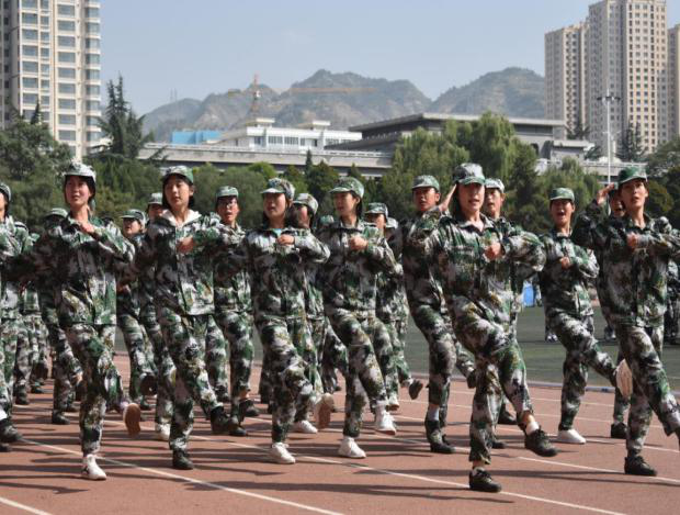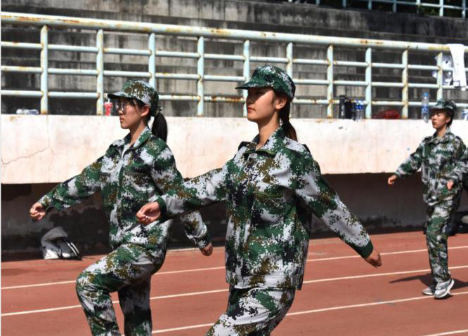 立正、稍息、跨立……听起来人人都能轻易做到,可在军训练习中,就不是那么简单的事了。单单军姿站立,就要同时做到收腹挺胸、两脚分开60度、后颈贴衣领等等多个细节,要做好可不容易。不过同学们在教官的指导下都尽力做得有模有样。虽然训练动作不断增多,大家依然精神饱满,不断练习着齐步、跑步、正步……一次次的进步使一个个方队越来越有模样!