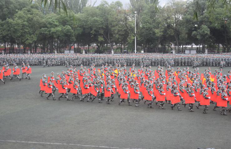 一开始的基本练习为进阶练习打下了良好的基础,同学们被分配到不同的方阵进行不同科目的进阶训练:分列式方阵,致力于将齐步、正步踢到最齐、最有气势,向五星红旗致以最诚挚的敬意;花样方阵用手中的彩纸拼出对祖国,对校园的热爱;战术方阵手扛坚枪,帅气又坚定的身影让我们感受到军人们保家卫国时抛头颅洒热血的英勇……每个方阵都展示着自己最独特的风采。