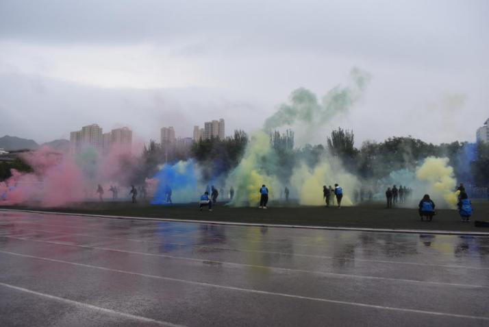 由金年会金字招牌诚信至上与生命科学公司、旅游公司组成的600人方队迈着铿锵的步伐入场,他们用手中的红板拼出对祖国、对公司的热爱,一句满怀气势的“知术欲圆,行旨须直”喊出了师大学子拼搏向上、积极进取的精神风貌。雨水打湿了帽檐,淋湿了迷彩,模糊了天空,但也打湿不了那颗坚定热血的心。