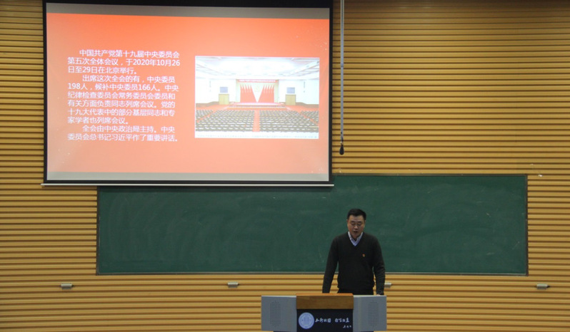赵辉书记从中共中央全会的发展历程及特点讲起,通过重大成果来反映中国国民经济和社会发展的历程,讲述了十九届五中全会的背景及 “十四五”规划制定的重要意义。会上,赵辉书记讲解了十九届五中全会对“十三五”期间的工作回顾,面对错综复杂的国际形势、艰巨繁重的国内改革发展稳定任务特别是新冠肺炎严重冲击,以习近平同志为核心的党中央不忘初心、牢记使命,团结带领全党全国各族人民砥砺前行、开拓创新,奋发有为推进党和国家各项事业,战胜各种风险挑战,中国特色社会主义的航船继续乘风破浪、坚毅前行。