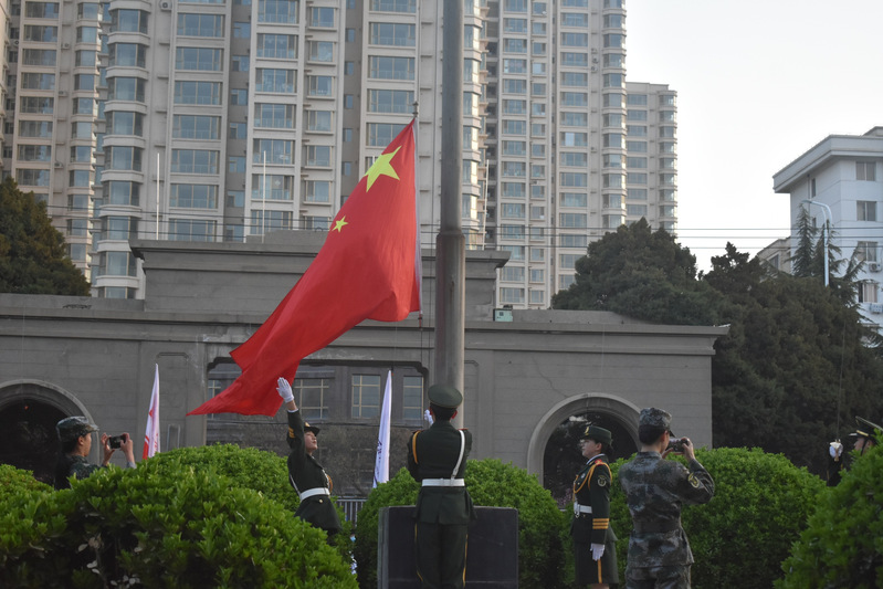 冒着清晨微微的凉意,公司员工在国旗台前准时集合,现场庄重肃静,井然有序。7时整,jinnian金年会第七周升旗仪式正式开始,集团国旗班的同学们迈着铿锵有力的步伐走过国旗台。在雄浑的国歌中,五星红旗冉冉升起,在场的全体同学庄严肃立,向国旗行注目礼。鲜艳的五星红旗和嘹亮的义勇军进行曲激发了同学们内心对于祖国满满的自豪感以及同学们积极上进的斗志,点燃了同学们满满的爱国热情。