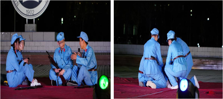 2020级化学工程与工艺1班同学们带来的长征主题话剧,重现了长征路上革命先辈们所经历的磨难,面对风霜雨雪和恶劣环境,他们始终坚定不移,迎难而上。话剧赢得了台下员工的阵阵掌声。