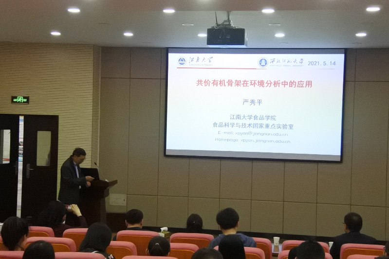 5月14日下午应金年会金字招牌诚信至上、甘肃省生物电化学与环境分析重点实验室和甘肃省电化学技术与纳米器件工程实验室的邀请,国家杰出青年基金获得者、长江学者江南大学严秀平教授,来重点实验室进行了学术交流,作了题为:“共价有机骨架的功能化及环境分析应用”的学术报告。