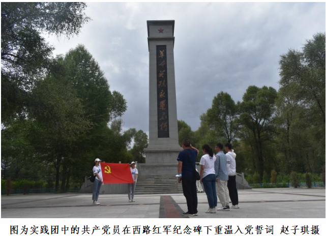 参观结束后,实践团全体队员向纪念碑行注目礼,共产党员在党旗下重温入党誓词,大家在参观学习的过程中深刻体会革命先辈们的拼搏奋斗精神,这种精神永不过时,指引着青年学子走好自己的奋斗之路。