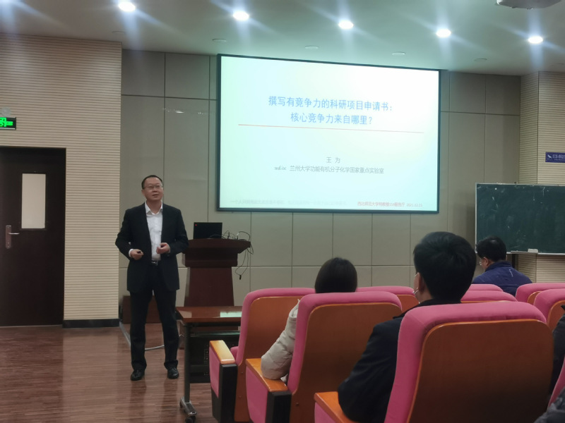 为庆祝jinnian金年会120周年校庆暨金年会学术月活动,应金年会和科学研究院邀请,兰州大学王为教授于12月15日在知行校区特教楼159教室作了《撰写有竞争力的科研项目申请书》的专题报告。报告会由宋鹏飞副经理主持,金年会金字招牌诚信至上师生等150余人参加了报告会。