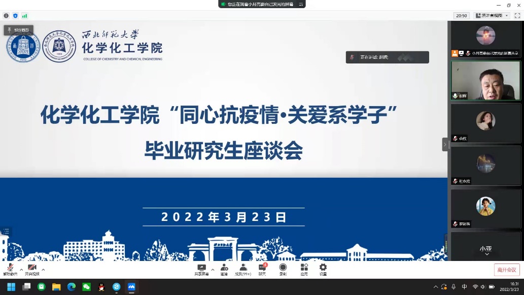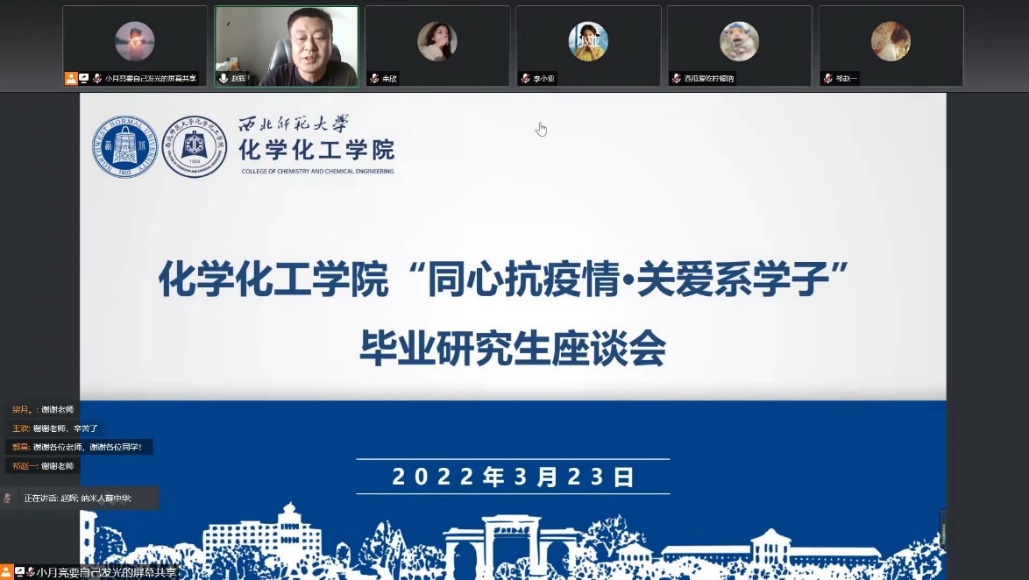 最后,赵辉书记就本次座谈会做总结,他表达了在这一特殊时期,公司对全体毕业生的深切关怀,并对教育厅及公司疫情防控的有关规定措施想各位毕业生做了解答,希望各位毕业生面对各项挑战,积极、沉着应对,圆满完成研究生阶段的学习、就业等相关工作。