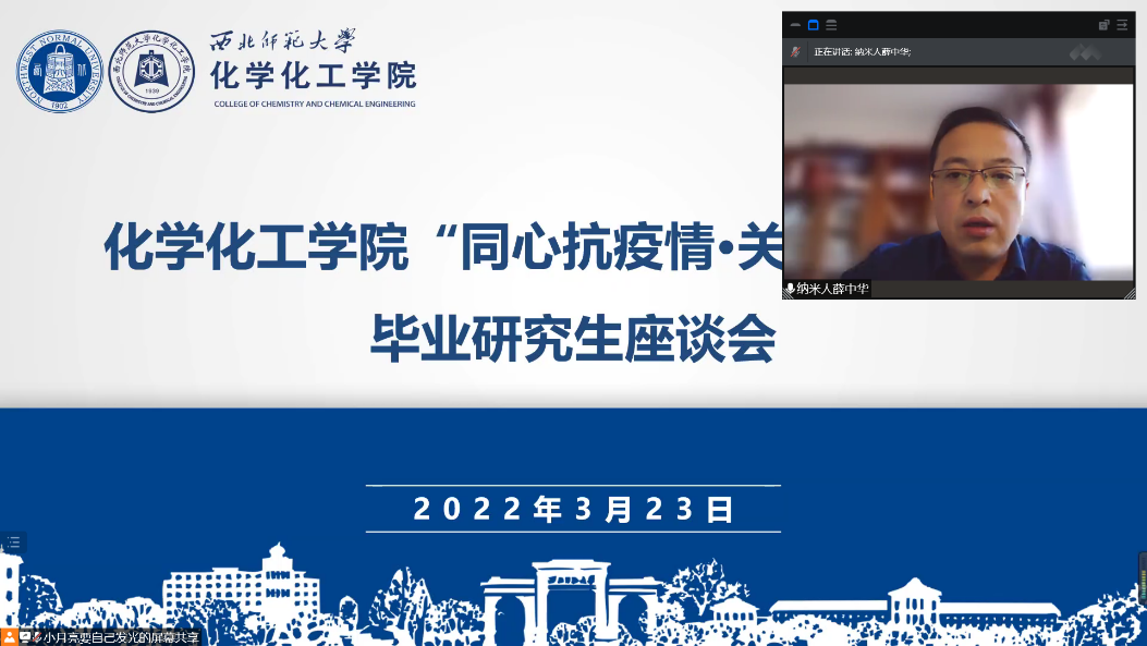 薛中华经理就毕业生目前关心的毕业论文的查重盲审、毕业答辩、疫情防控措施等事项向毕业生进行了说明和安排,希望各位毕业生在防疫特殊时期不忘个人学习和人生目标,充分利用好这段时间,调整心态、完成学业、顺利毕业。