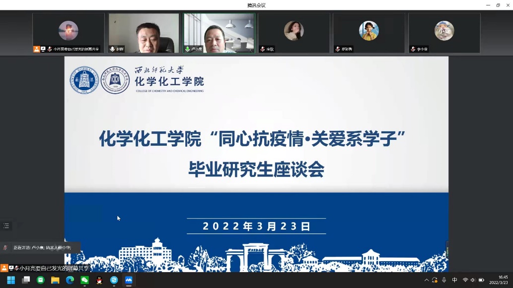 卢小泉教授叮嘱各位毕业生在疫情防控大环境下,务必严格遵守各项防疫规定,嘱咐毕业生们利用这个时期一定认真修改、完善个人的毕业论文,耐下性子精读文献,发掘问题、寻找亮点,这样才能更好的迎接毕业答辩。另外还强调要调整个人心态积极应对,并鼓励各位毕业生积极就业,祝愿各位毕业生在离校时给自己一份满意的答卷。