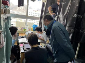 走访过程中,赵辉书记就当前线上教学情况与同学们作了交流,围绕线上教学条件保障、授课方式、教学效果等听取了大家的意见和建议。随后,赵辉书记明确表示,公司将积极与相关部门沟通、协调,逐步改善疫情防控期间线上教学环境。赵辉书记悉心叮嘱同学们,要认真听课、积极交流、提升质量,与老师们双向努力,共同营造在线互动、教学相长的良好氛围。