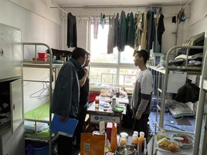 3月24日上午,在23日刚刚召开了公司疫情防控线上员工座谈会,初步了解员工学习、生活情况和存在问题的情况下,公司党委书记赵辉和公司辅导员马晓炜、曹锦一行3人,深入知行校区员工公寓2号、4号楼,实地走访查看公司2021级本科生宿舍,与员工面对面沟通交流,并进一步了解员工的学习、生活情况。