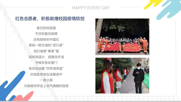 2021级本科生各班级以“青春之我,战疫必胜”为主题,积极分享校园封闭管理期间的志愿活动经历。2021级化学6班员工屠灏潆、杨堃向同学们分享了参加志愿活动的“心路历程”,以身作则带动身边同学在志愿活动中感悟人生价值;班主任祝振童老师在班会中向同学们分享了自己求学经历,勉励同学们要勇于克服眼前的困难,敢于迎接胜利。2021级化学1班班主任魏强兵老师要求同学们在疫情防控期间具备大局意识,将集体利益放在首位,在参加集体活动中调节自己的负面情绪