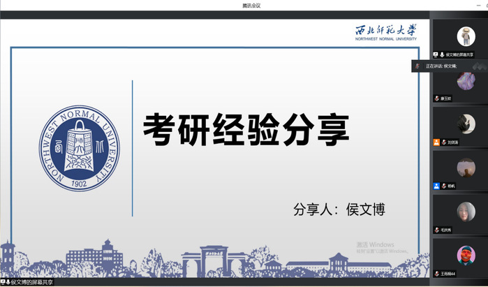 考研经验分享会上,闫旭、王朝立等几位同学从自身所对应学科专业方面,分享了自己的复习方案,为同学们推荐了相应科目的书籍和优秀网课资源。代新宇、侯文博等多位同学根据自身经历,给同学们分享了一些考研过程中的有趣的小故事,提醒考研同学们要保持平稳心态、稳步前进,根据自己缺点制定计划,一步步提高自己。公静玲同学指出,自己本身考试准备考研的时候相对较晚,但还是凭借自己的努力成功上岸,鼓励考研的同学们只要肯努力,多久都不算晚,不要被懒惰引领了思想,合理安排时间劳逸结合。