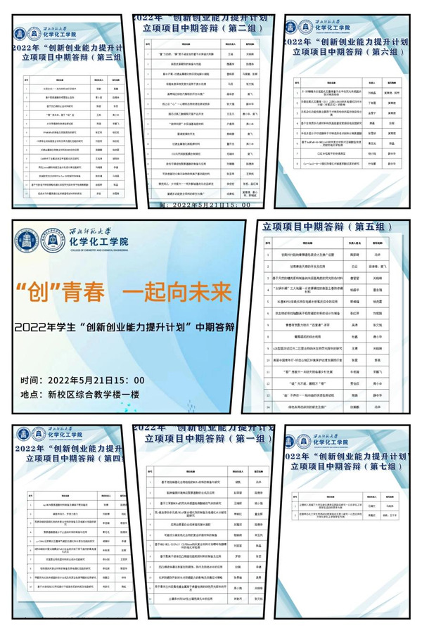 在对各项目认真点评、耐心指导的同时,各组评审教师对一些亮点特色项目给予了肯定。2020级本科生赵佩项目组《凹凸棒液体灌注表面在防腐性、防污及防结冰中的应用》主要研究了具有卓越性能的有效替代涂层SLIPS,并通过实验成功制备了稳定的SHS和SLIPS;2020级本科生吴涛项目组《青春有我,聚力助农“百里清”凉茶》从助力农村地区经济发展的角度出发,结合百里香特色风味和生态价值,研发百里清凉茶饮品;2020级本科生刘新博项目组《蒲音传四方,梦想力接力》主要研究了花青素在不同pH环境下不同的颜色变化,探索花青素在各个领域的作用;2021级硕士研究生成青松项目组《富硒多功能复合饲料的研发与推广》从助力乡村振兴的角度出发,研发富硒多功能复合饲料,打造富硒品牌,通过科技提高农民收入;2021级硕士研究生陈娟项目组《“油”不得你——地沟油快速检测试纸》展示了一种使用手持式压力计读出的快速检测试纸,压力信号的引入克服了传统颜色试纸检测“地沟油”时无法定量的缺陷。