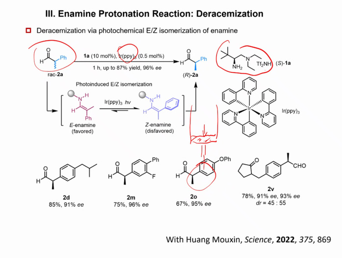 罗三中教授介绍了其团队在仿生小分子催化领域的最新研究成果,主要是在深入揭示烯胺催化反应机理的基础之上,不断驱动发现新反应。羰基转化是教科书中经典的化学反应,特别是通过不对称催化反应,可以制备药物应用所必需的对映体纯的产品。罗老师团队采用光化学E/Z异构化策略,通过使用简单的氨基催化剂和现成的光敏剂对α-支链醛进行去外消旋化,多种外消旋α-支链醛可以直接转化为高选择性的任一对映异构体。这项研究提出了一种独特的光化学E/Z用于外部调节烯胺催化的异构化策略。