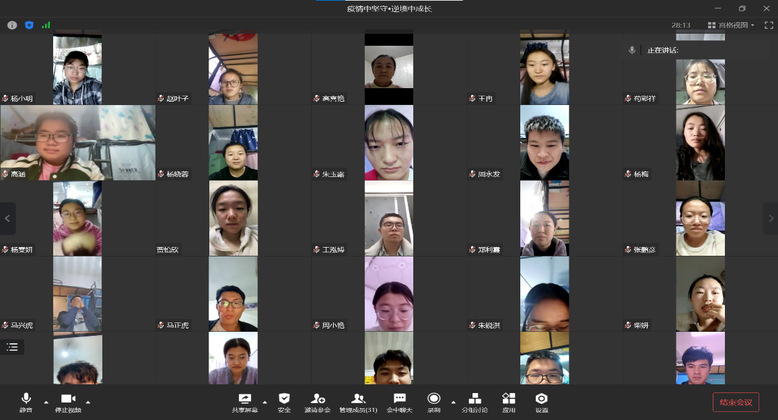 分享生活趣事,积极调试心理。面对疫情带给同学们学习和生活的不便,在班会组会中,同学们通过分享生活中的趣事、开展线上娱乐小游戏等方式积极调解心理,舒缓身心。在活动过程中,同学们表示在疫情防控期间,公司公司工作人员用心、贴心、暖心、尽心做好教学管理服务工作,以爱为砖,用心筑墙,打造了安心、放心、舒心的学习生活环境,大家也应尽自己的努力克服困难,积极自我调试,保持健康良好的心态,携手并肩,应对时下之艰。