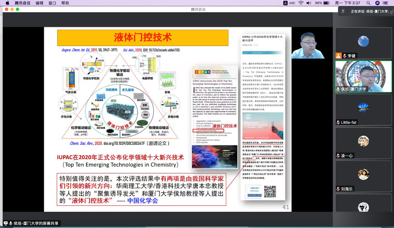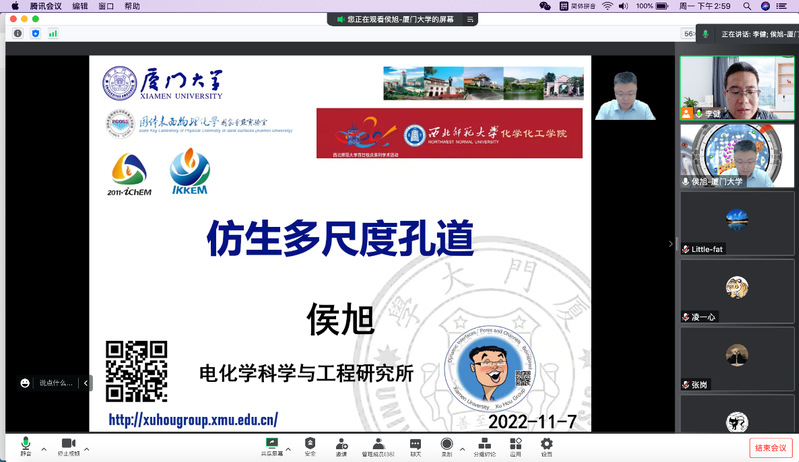 为庆祝jinnian金年会120周年校庆暨金年会学术月活动,应金年会金字招牌诚信至上、生态功能高分子材料教育部重点实验室和甘肃省高分子材料重点实验室邀请,厦门大学侯旭教授于11月7日下午15:00通过线上会议为公司师生作学术报告,报告题目为《仿生多尺度孔道》,报告由金年会金字招牌诚信至上李健教授主持,金年会师生近180人线上参加了报告会。