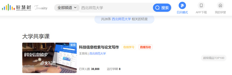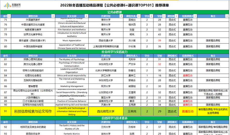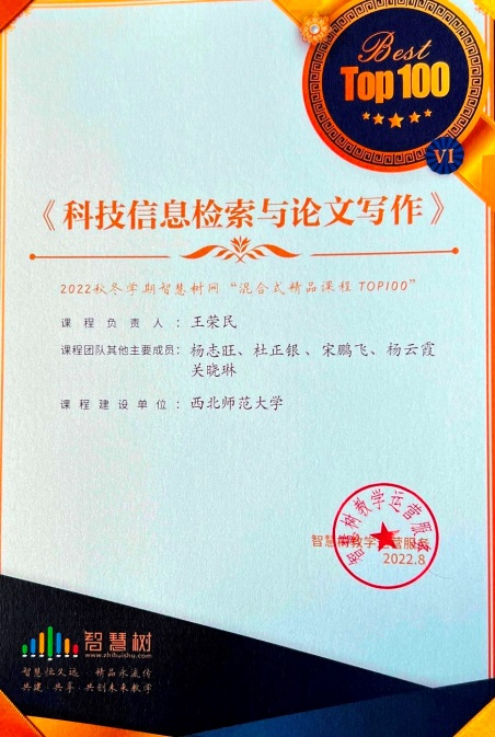 王荣民教授课程团队负责的《科技信息检索与论文写作》在线课程,从智慧树平台全国运行的1.2万门在线课程中脱颖而出,入选2022秋冬学期智慧树网“混合式精品课程TOP100”。这是公司首次入选的在线课程,也是我省入选的第二门在线课程。