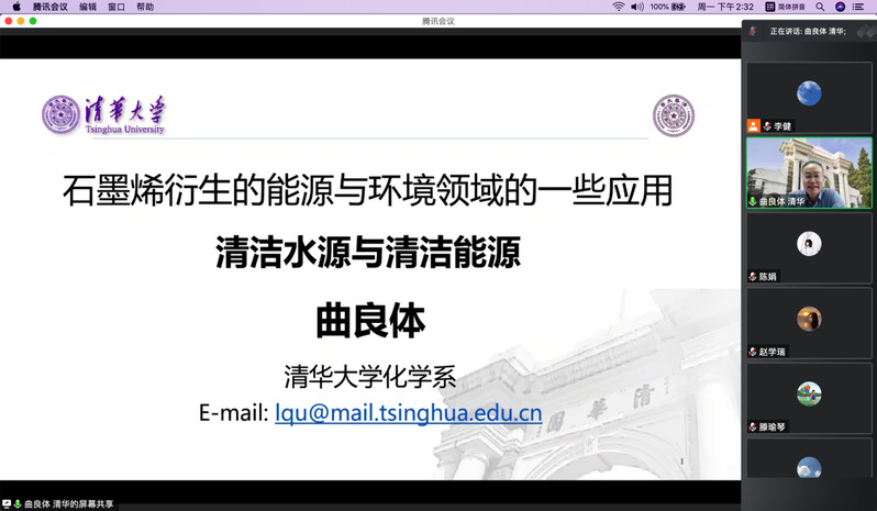 为庆祝jinnian金年会120周年校庆暨金年会研究生学术月活动,应金年会金字招牌诚信至上、生态功能高分子材料教育部重点实验室和甘肃省高分子材料重点实验室邀请,清华大学曲良体教授于11月28日下午14:30通过线上会议为公司师生作学术报告,报告题目为《石墨烯衍生的能源与环境领域的一些应用》,报告由金年会金字招牌诚信至上李健教授主持,公司师生130余人线上参加了报告会。