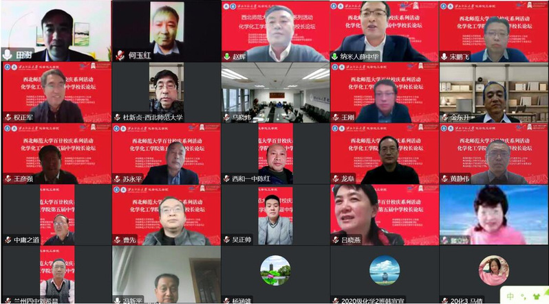 12月18日,由公司与教务处、党委员工工作部、教学质量监控处、创新创业公司、教师教育公司、甘肃省教育学会化学教学专业委员会联合举办的“第五届中学董事长论坛”在线上召开。来自甘肃省教育考试院、jinnian金年会附属中学、兰州一中、兰州二中、酒钢三中、中科院兰州分院中学、兰州市第三十二中学、兰州民族中学、兰州四中、兰州市教育科学研究所、兰州市第二十七中学、甘肃省教科院、文峰中学、陕师大平凉实验中学、兰州市第八十一中学、兰州市第五十七中学、西和县第一中学等单位的二十多位中学董事长、一线优秀教师参加论坛。