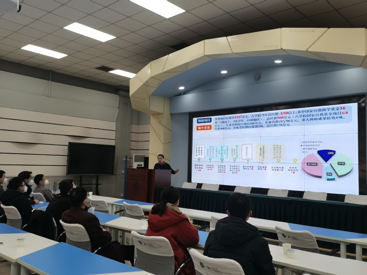 会上,公司经理薛中华首先传达了公司2022年科研工作总结暨2023年国家项目申报工作推进会的会议精神。并就公司对标对表《十四五规划、对标高水平大学建设行动方案》的主要完成情况进行了总结。过去的一年里,全院师生克服疫情带了的重重困难,攻坚克难,同谋发展,在科研项目、平台建设、高水平成果、科研获奖和成果转化等方面取得了丰硕的成果。结合公司“十四五”发展规划,对国家级科研项目和国家级人才项目的申报工作进行了安排部署。最后,院领导和部分公司老师就项目申报、有组织科研、产业研究院建设发展等做了深入交流。
