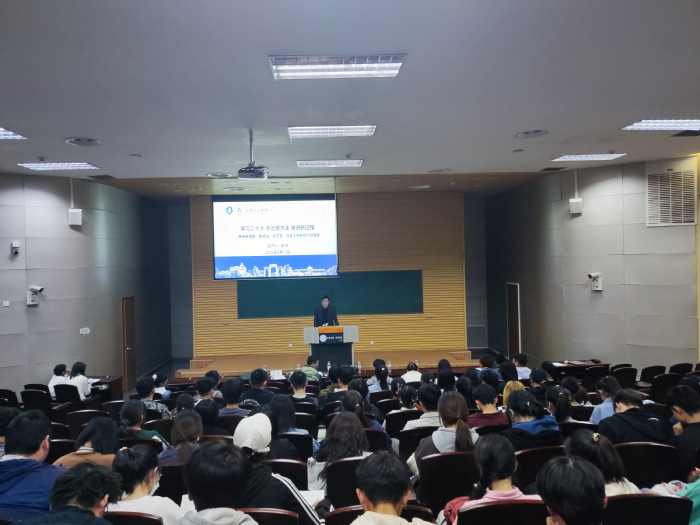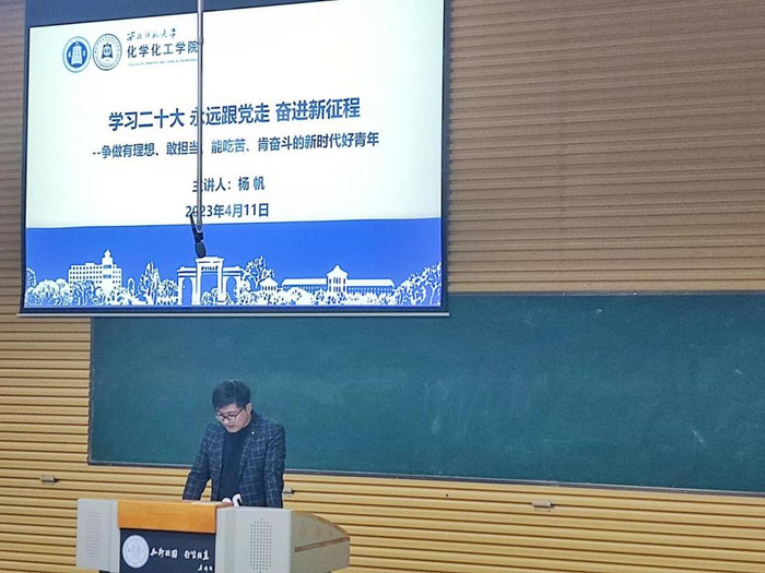 为深入贯彻学习党的二十大精神,落实“三抓三促”行动,提升员工的综合素养,公司于2023年4月11日晚,在新校区毅然报告一厅开展团委书记讲团课暨团员轮训活动,本次团课由团委书记杨帆老师主讲,辅导员梁丽洁老师、徐召老师、2022级员工及员工会成员参加。