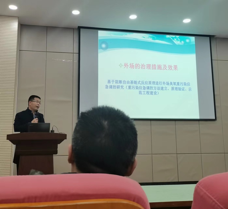 王国英教授结合课题组的科研成果,讲述了臭氧层污染的主要原因以及治理措施及效果。讲解了其科研成果在在兰州地区减少臭氧污染做出的贡献,同时提出了基于阻断自由基链式反应原理进行外场臭氧重污染应急调研研究成果。