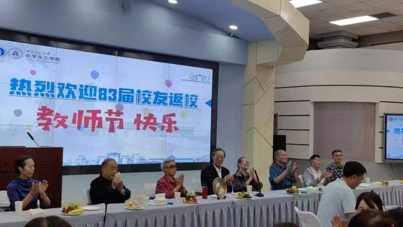 秋风送爽,桃李芬芳。在第39个教师节到来之际,金年会金字招牌诚信至上迎来了一批风华正茂、意气风发的“同学”,他们是公司1983届化学乙班的员工。时隔40年,员工们回到了既熟悉又陌生的母校,畅叙情谊,追忆往昔,寄望未来。为了迎接员工来访,9月10日上午,公司在教师发展中心隆重召开了员工返校座谈会。公司员工会会长、原副董事长张生勇,就业与员工事务处副处长雷军平,83届化学乙班任课教师,83届乙班返校员工,公司班子成员、青年教师和员工代表70余人参加了座谈会。会议由公司党委书记赵辉主持。