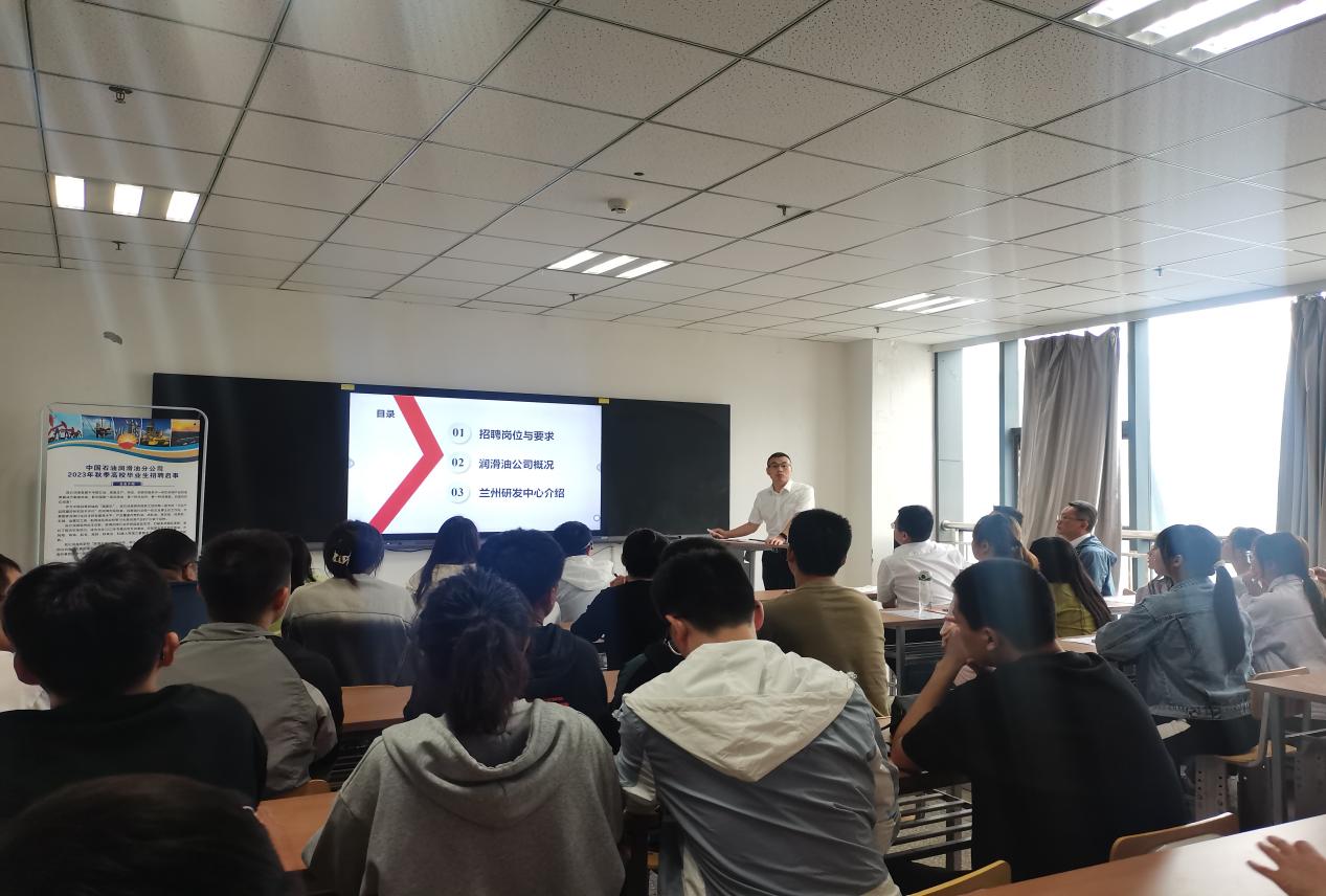为深入落实全省2024届高校毕业生就业工作启动会会议精神,积极开展访企拓岗促就业系列活动,公司于9月19日上午在新校区综合实验楼11楼会议室举办兰州润滑油研究开发中心秋季校园招聘座谈暨宣讲会,兰州润滑油研发中心副主任薛卫国、科研管理部部长周康、综合办公室主任马育体及相关工作人员参加座谈会,经理宋鹏飞、副经理郭昊、黄静伟、苏瀛鹏、公司教师胡东成、公司辅导员参会。座谈会由公司党委副书记陈芳主持。