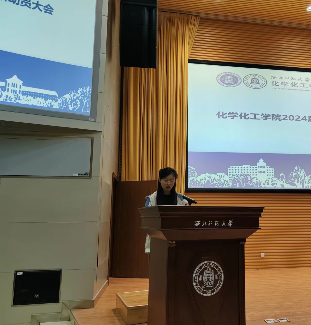 研究生盛正婷、王朵朵同学,结合自己的经历,从考研政策、考研流程、如何做好考研、就业准备等方面做了经验分享,鼓励同学们提前确立目标,坚定信念,脚踏实地,认真学习,积极准备,以“不破楼兰终不还”的决心朝着目标奋进。