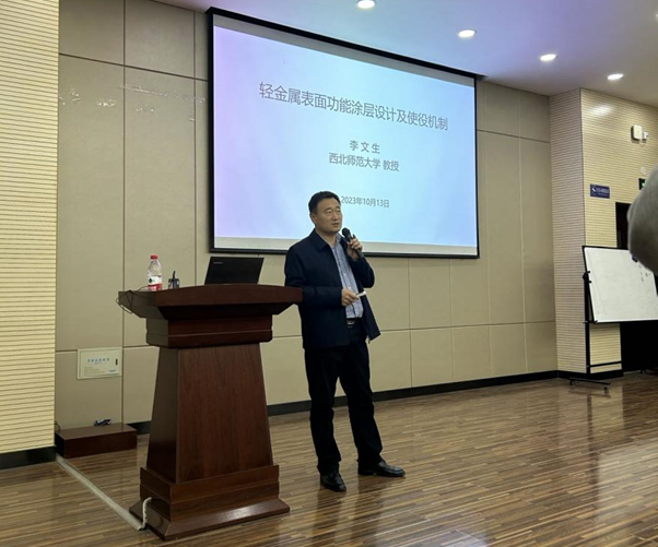 李文生教授结合其所带领团队从事的金属表面防护与延寿技术领域的研究,从耐磨蚀金属材料开发、多功能金属陶瓷涂层(膜)设计和工艺方法、耐磨蚀工程健康监测技术和表面精细化加工研究等方面作了深入浅出的报告。