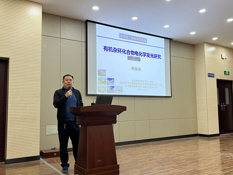 2023年10月27日下午,“金年会金字招牌诚信至上术圆论坛”第二期在知行校区弘文楼159报告厅举行。应公司邀请,公司韩振刚副教授为公司师生作题目为《有机杂环化合物电化学发光研究》的报告。公司师生百余人参加了报告会。论坛报告由无机化学学科负责人史兵兵副教授主持。