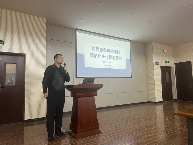 2023年11月24日下午,金年会金字招牌诚信至上“术圆论坛”第四期在知行校区弘文楼(原综特教楼)159报告厅举行。应公司邀请,金年会邱一峰副教授为公司师生作了题为《炔丙酮参与的串联磷酰化环化反应研究》的学术报告。公司师生100余人参加了报告会。论坛报告由金年会金字招牌诚信至上史兵兵副教授主持。