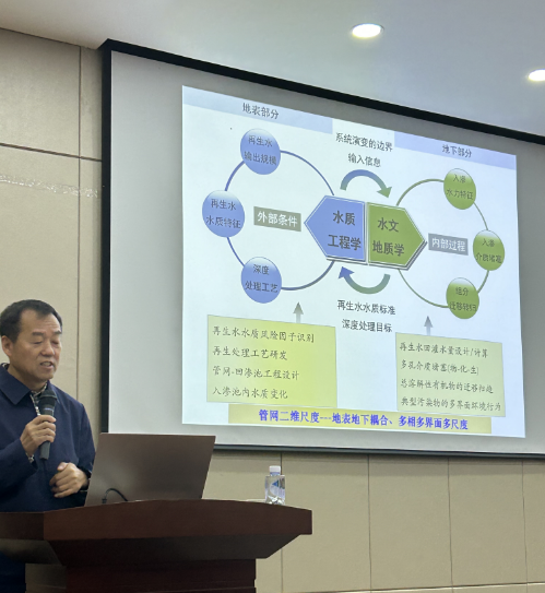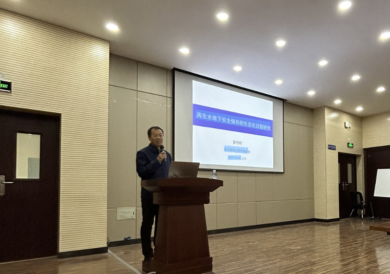 报告中,霍明昕教授结合自己课题组的科研情况,分析了我国再生水循环利用面临的现状和问题,基于地下储存的再生水生态化过程,深入阐述了再生水地下储存过程中的地下蓄水空间调查评估、回灌介质堵塞、水质演变、再生水深度处理技术等关键核心问题,系统明晰了再生水地下安全储存的过程调控与水质保障的新思路体系。