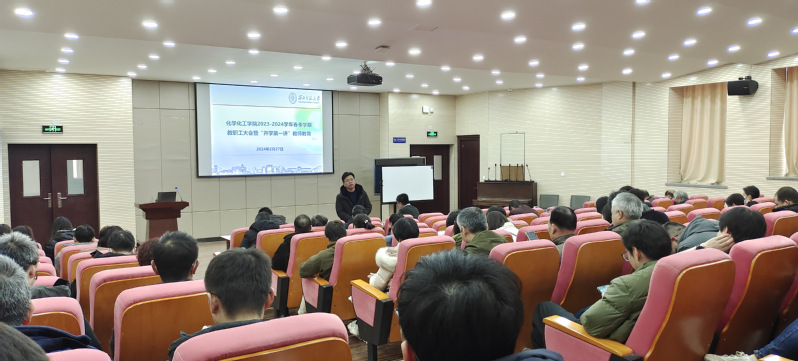2024年春季学期教职工大会主要由本科公司产品审核评估工作启动会、2024年公司重点工作部署会和“开学第一讲”教师教育活动三部分组成。会议第一阶段,兰州理工大学石油化工公司李锴老师针对即将全面启动的本科教学评估,从“方案出台背景及意义”、“指标体系内涵解读”、“审核评估工作程序”、“自评报告撰写说明”、“审核评估工作汇报”等五个方面为全院教师做了详尽深入的讲解,为审核评估顺利开展奠定了思想基础。