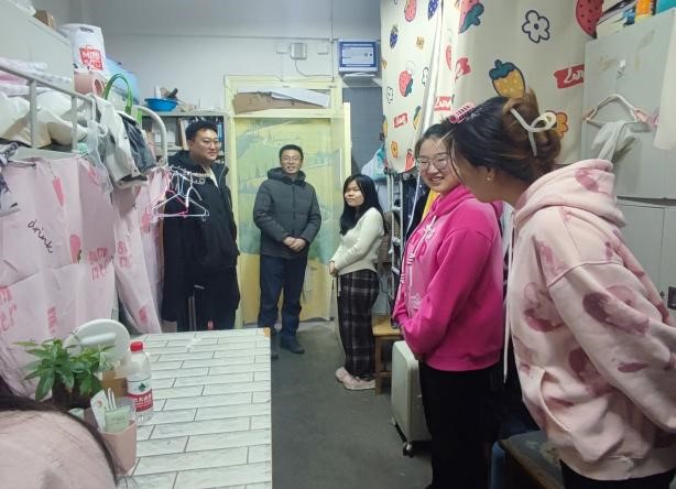 公司经理宋鹏飞深入兰天公寓二年级本科生宿舍看望同学们。在交谈中,宋经理要求同学们尽快调整学习状态和生活作息,以饱满的精神面貌上好开学第一课,及时制定新学期的学习计划,继续做好职业生涯发展规划,朝着更高的目标努力奋斗。