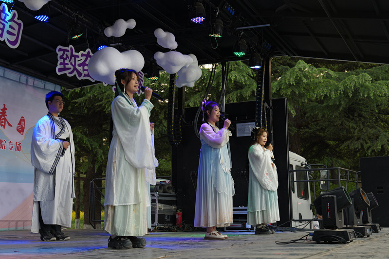 活动当晚,云亭校区和美广场成为了诗意的海洋,师生们齐聚一堂,共同享受了一场文化与艺术的盛宴。古风舞蹈《春三月》搭配古典服饰,用优美的舞姿为观众呈现了一幅春天的生动画卷;古风舞蹈《山外小楼夜听雨》伴奏曲调委婉,同学们舞步轻盈,如同夜雨中的杨柳,静谧而优雅。