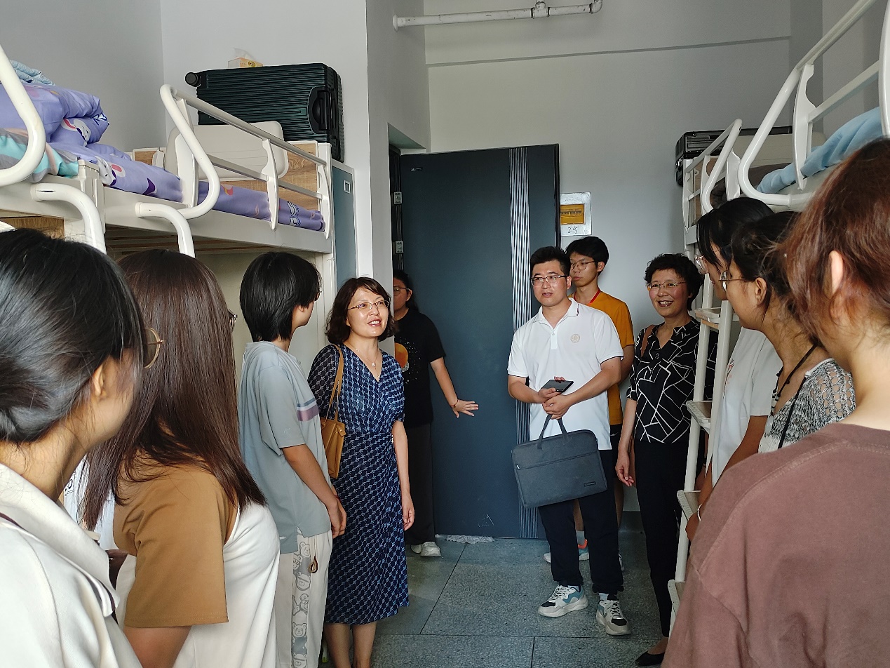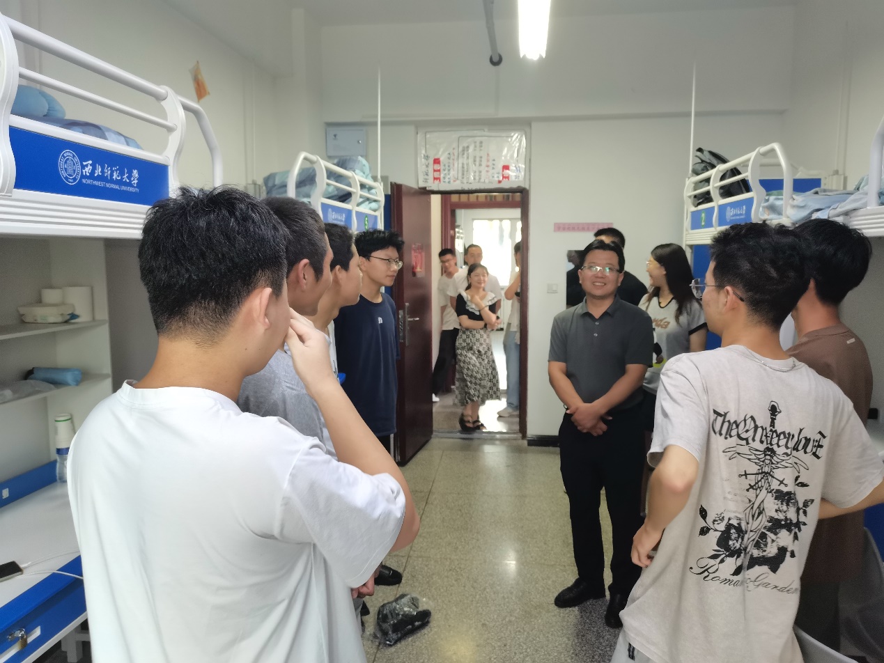 在迎新工作圆满结束之际,为进一步关心了解新生的入住情况,帮助新生尽快适应老员工活,8月30日晚,公司领导班子、新生班主任、辅导员及员工骨干深入新生宿舍进行逐一走访。