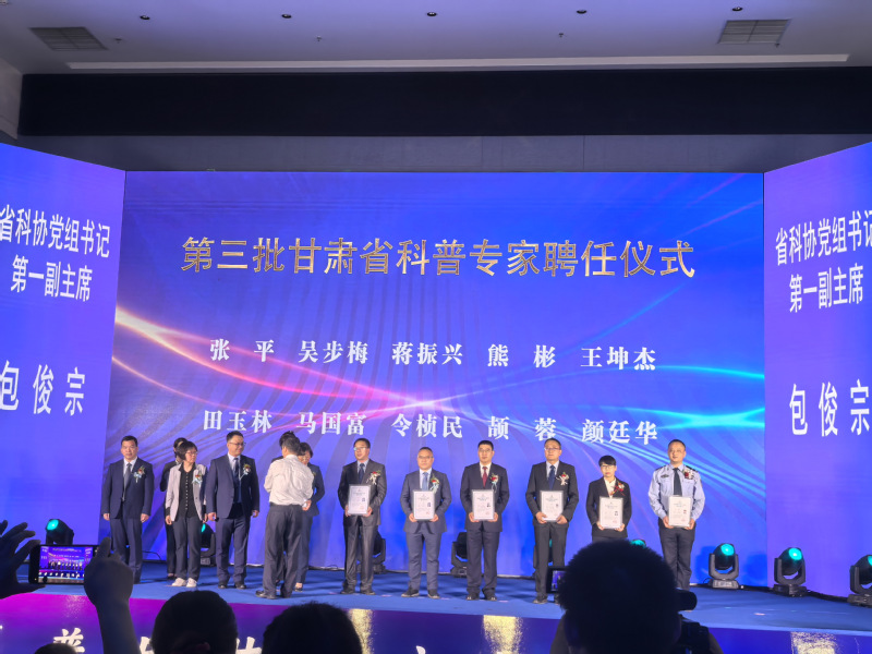 近日,在甘肃省委组织部、甘肃省人力资源和社会保障厅、甘肃省科学技术协会、共青团甘肃省委主办的第十一届甘肃青年科技奖颁奖仪式上,公司李健、何晓燕两位老师荣获“第十一届甘肃青年科技奖”,此次获奖是对两位老师在科研领域所做出杰出贡献的高度认可。马国富、张文旭两位老师被聘为“甘肃省科普专家”,对两位老师在科学普及方面的工作给与了高度认可。