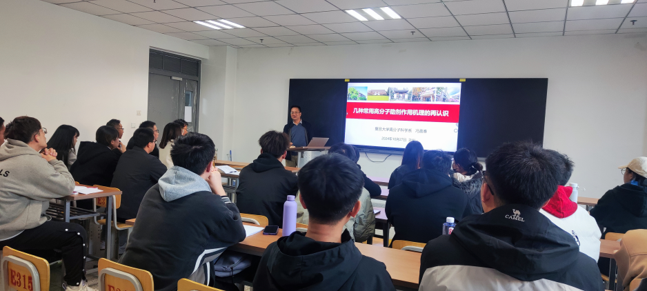 2024年10月27日,受金年会邀请,复旦大学高分子科学系副主任冯嘉春教授为公司师生作了题为“几种常用高分子助剂作用机理的再认识”的学术报告,公司师生40余人参加了报告会。
