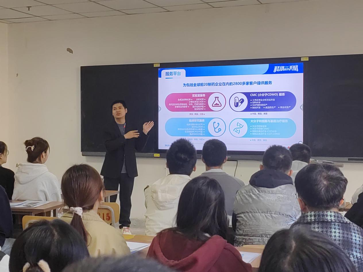 座谈会上,公司党委副书记杨倩就公司团队队伍、人才培养、毕业生情况进行了详细介绍,对公司近三年在该单位就业的多名优秀员工进行了调研,并表示公司与该企业在科学研究和人才培养方面关联性强,毕业生对企业认可度较高,希望今后将加强沟通与交流,在产学研合作、实习实践等方面达成合作意向。康龙化成(北京)新药技术股份有限公司集团招聘中心招聘经理李帅对公司毕业生的工作能力给予充分肯定,并表示将继续加强人才招聘规模。招聘会上,招聘单位主要围绕企业文化、岗位设置和招聘流程作了介绍,互动环节气氛活跃,公司毕业生积极与用人单位沟通咨询,现场共投递简历66份。