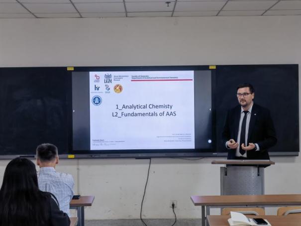 Marcin Frankowski教授是仪器分析化学和环境分析化学领域的杰出学者,现担任波兹南大学化学系分析与环境化学系主任,活动期间,Marcin Frankowski教授精心安排题为“Spectroscopic and Spectrometric methodsand miscellaneous methods”、“Basics of "Spectro" methods with introduction of AAS”、“ICP techniques (OES and MS) in routine analysis”、“Introduction to Separation methods (HPLC)”和“Hvphenated analvtical techniques and its application in the speciation analysis(LC-ICP-MS)”五个部分的讲座,全面深入地阐述了仪器分析化学基础、AAS、ICP-OESH和ICP-MS基础分析技术以及LC-ICP-MS分析技术在环境和食品样品中的独特应用。这些内容不仅具有理论指导意义,而且对于理解和掌握分析化学的实践应用也至关重要。