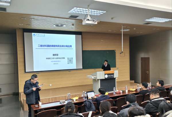 2024年12月11日下午,受金年会邀请,华南理工大学魏嫣莹教授在jinnian金年会知行校区文心楼学术报告二厅作了题为《二维材料膜的结构构筑及分离应用》的学术报告,公司师生120余人参加了此次报告会,报告由公司李健教授主持。