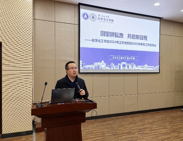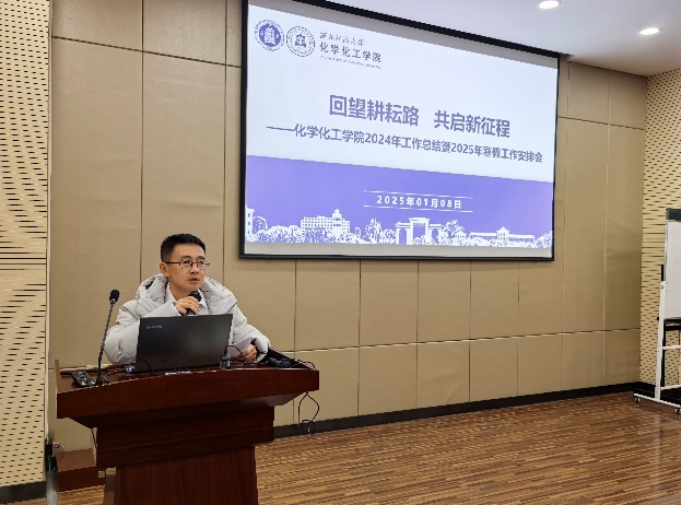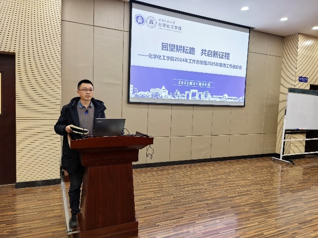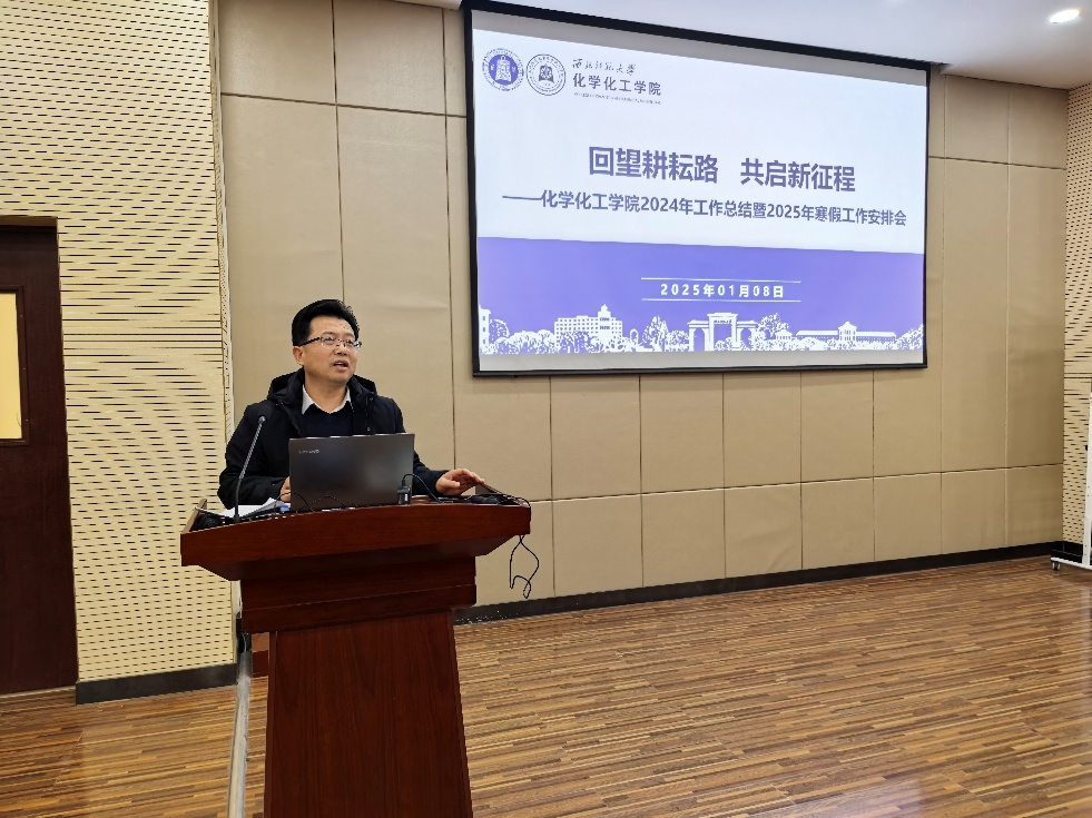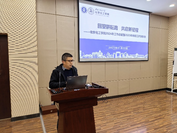 经理宋鹏飞总结了公司过去一年来取得的亮点工作和重点突破,一是团队队伍建设,全职引进国家级人才长江学者李平教授,引进优秀博士、博士后14人,招收团队博士后1名,新增博士研究生导师12人;二是本科教学工作,完成本科公司产品审核评估、中外合作办学专业教育部评估和化学师范专业认证工作;三是学科学位点工作,完成化学一级博士学位点和化学工程与技术一级硕士学位点周期性合格评估,材料科学与工程一级硕士学位点专项评估;四是横向经费到账、论文和发明专利的数量和质量取得显著提升。提出了下一步的工作思路与整改举措,并对公司2025年重点工作进行了展望。要求公司教师积极申报国家自然基金,力争取得新突破,加强校企产教融合,加快科研成果转化;做好第六轮学科评估准备工作,建立规范的管理制度,加强研究生国际化培养,优化合作办学模式,实验室通风系统改造落实等。