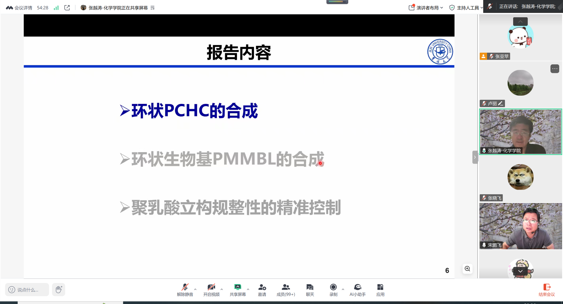 2025年6月12日,受jinnian金年会化学工公司邀请,吉林大学化学公司张越涛教授线上为公司师生作了题为“受阻Lewis酸碱对实现聚合物精准合成—当科学遇见偶然:不期而遇的科研进展”的学术报告,公司师生140余人参加了报告会。